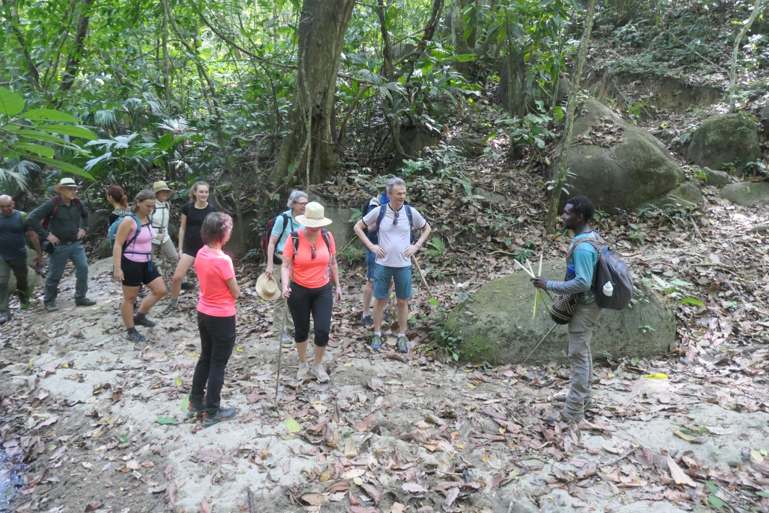 Bunkuany a recently discovered sacred site in the Sierra Nevada de Santa Marta as many call it the Bunkuany Lost City because of it’s similarities with the Lost City archeological site which is much further into the mountains, Bunkuany has the same style and somewhat similar stone terraces and actually served the Tayrona Tribes as a sacred site according to current understanding of this site. So it was never a City but more a place of pilgrimage where tribe members went to solve life’s problems during the tour we will explain more about what was going on here in the past, it has a very interesting history. The Hiking trail towards Bunkuany takes more or less 2 hours and crosses creeks and is mostly going through the forrest where you can observe different flora and fauna